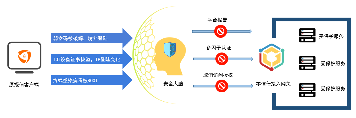 熊猫体育零信任可以保护边缘计算设备的身份安全与数据安全,使每个边缘网关成为独立的安全区段, 网关内业务服务受零信任平台保护。