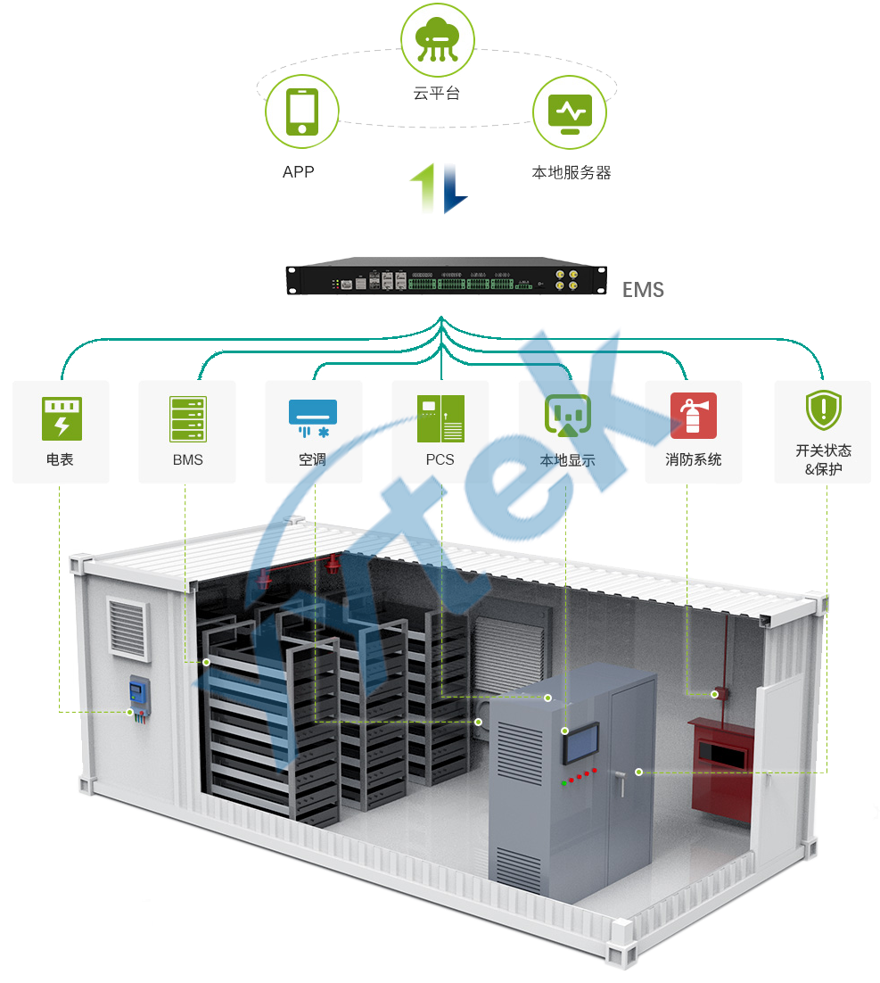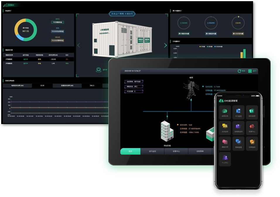 熊猫体育EMS系统以标准的基于边缘计算的物联网平台为底座,采用微服务软件架构,实现对储能系统各个设备的全生命周期管理。系统可以针对PCS、BMS、光伏、充电桩以及电表、动环、消防等设备,利用四遥技术进行实时的数据采集与控制,并通过大数据技术对场站的能耗数据进行分析及预测,从而帮助企业实时了解整个场站电力系统的运行状况,并根据削峰填谷、光储协同、需量控制等策略对场站内源网荷储各个节点进行能量协调与控制,为电力系统的安全、稳定、高效、清洁运行提供保障,实现经济效益最大化。