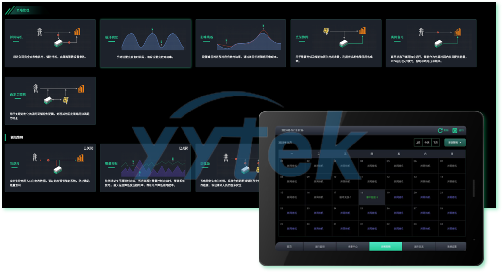 EMS系统支持全面的场站能源控制策略,包括并网待机、循环充放、削峰填谷、光储协同、离网备电、自定义策略、防逆流、防孤岛运行、以及需量控制等。场站可以根据自身需求、当地电价策略以及实际生产用电情况,按天设置相应的控制策略。同时,系统支持连接熊猫体育VPP运营管理系统,接收虚拟电厂平台下发的需求响应策略并执行。