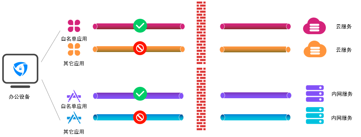 熊猫体育零信任系统始终保证仅“合法”的本地应用才能访问内网服务。只有经过管理员授权的应用进程才可以通过TLS隧道传输数据。系统将应用与服务绑定,提高服务访问的安全性。