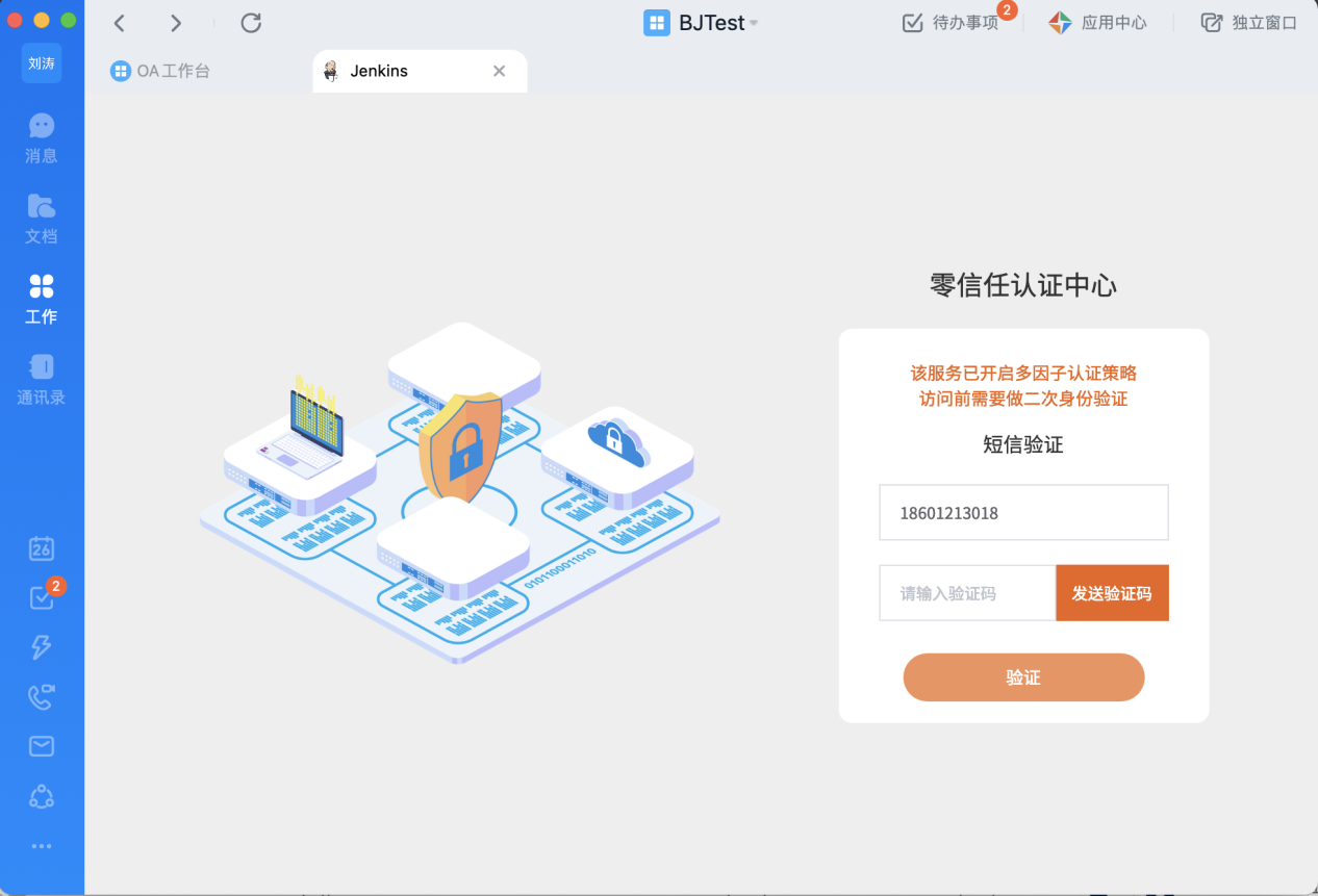 用户登录钉钉工作台,看到的下面两个应用即为受零信任保护的私有部署Web应用: