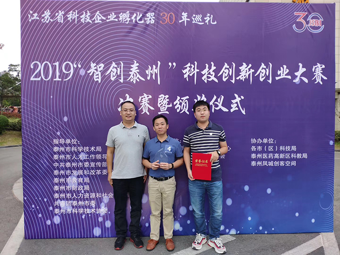 在大众创业,万众创新的号召下,公司积极报名参加2019年“智创泰州”科技创新创业大赛暨第七届“创业江苏”科技创业大赛,经过专家评审、复赛筛选等环节成功晋级进入决赛。