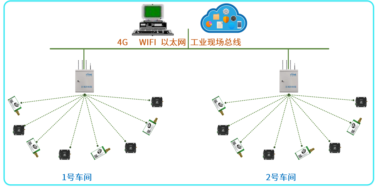 一个厂区可以配备多个区域控制箱,每个控制箱最多配备500-2000个设备节点,每个区域柜都能与工业系统进行对接,也可相互通讯;