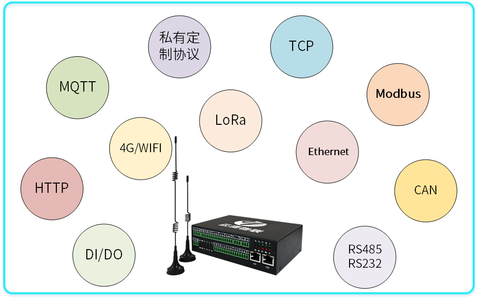 可与LoRa节点进行相互通讯,也可以与工业系统进行对接;