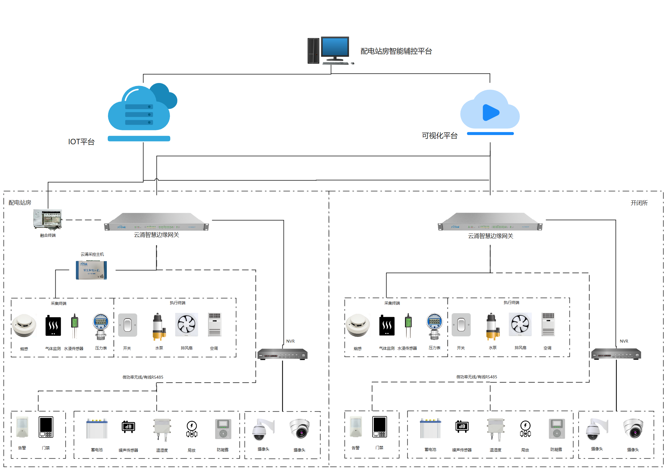 熊猫体育智慧边缘物联网关是整个系统的中枢部分,不仅可以在站内进行实时数据的采集上传,还能通过连接采控主机,实时接收站房环境的数据信息,同时对于接收到的设备状态、安防信息、视频监控等监测数据,及时上传到IoT平台和可视化平台,最终对配电站房内各功能模块的信息进行存储、处理及分析,通过标准协议传输给配电站房辅助监控平台。此外,边缘物联网关还可以及时接收平台发布的智慧控制调节命令,通过启停相关设备来进行环境调节,并同时反馈执行情况,设备传感器实时采集信息反馈,平台根据设备传感器实时采集到的信息反馈,对调节结果进行再判断,可实现不断循环优化。