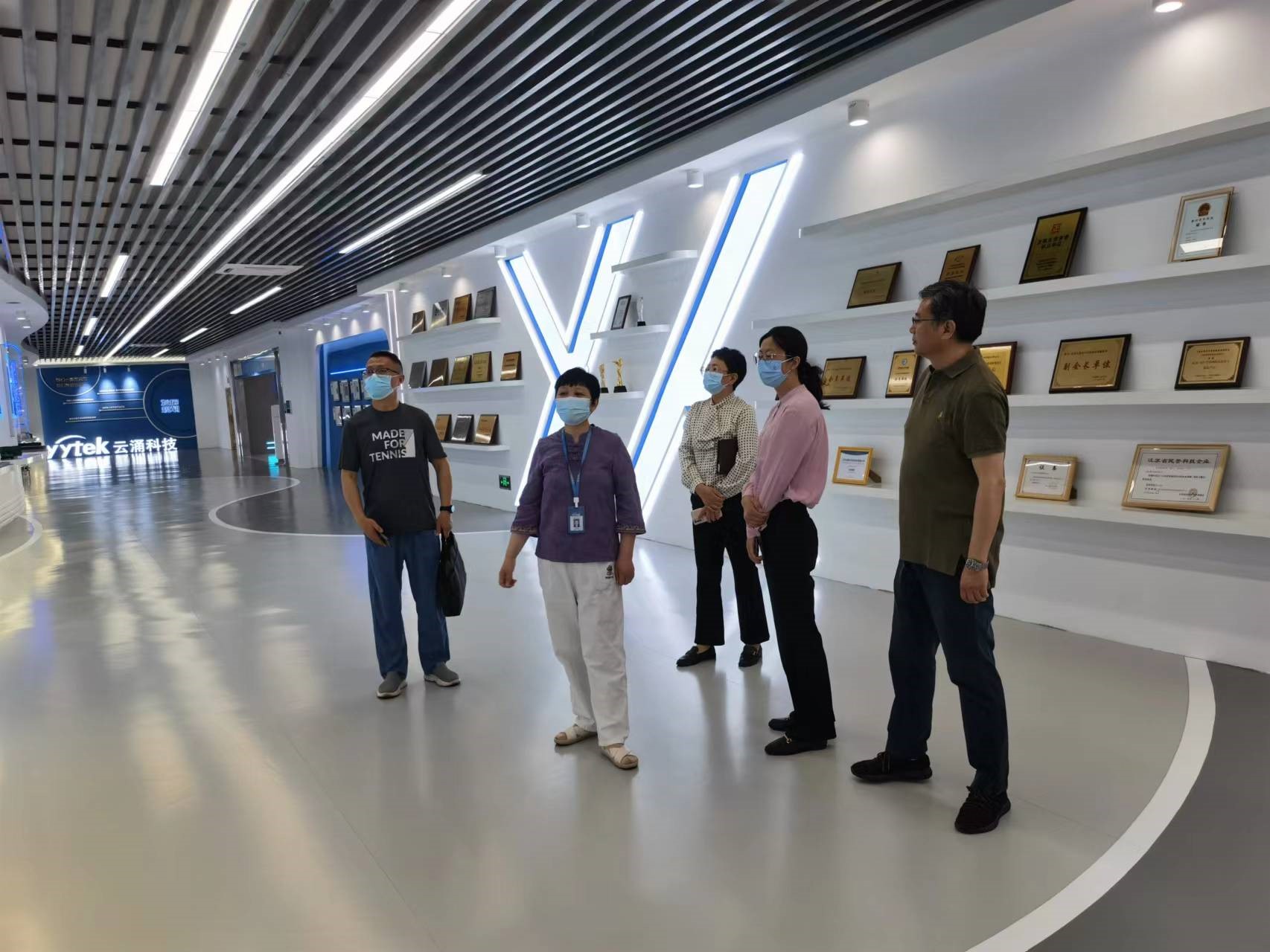 6月9日,泰州市海陵区总工会胡建萍主席及园区工会主席一行6人来到我司考察参观,并借此机会正式颁发了奖状。