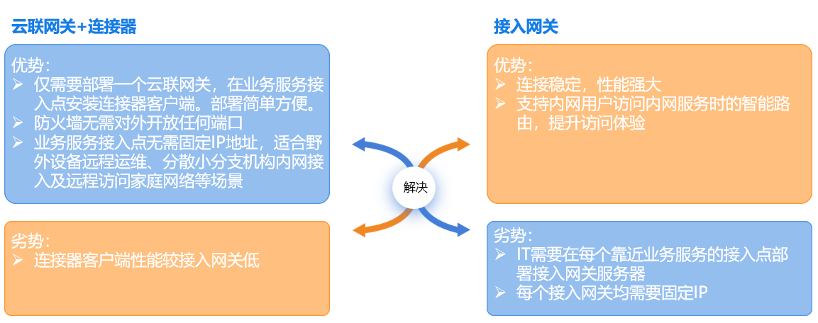 熊猫体育远程办公解决方案支持两种内网访问模式:基于接入网关的访问代理,以及基于云联网关+连接器的内网穿透。客户可以根据自身IT架构及实际需求选择适合的服务访问模式。两种模式可以同时存在。