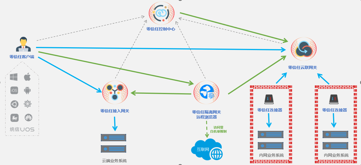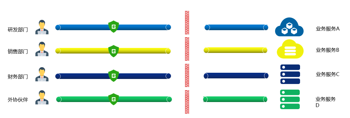 1、本公司员工与外部合作单位的员工需要组网远程协作,出于安全考虑又不能让外部员工远程接入本公司的内部网络,如何能保证协作业务的微边界隔离访问?