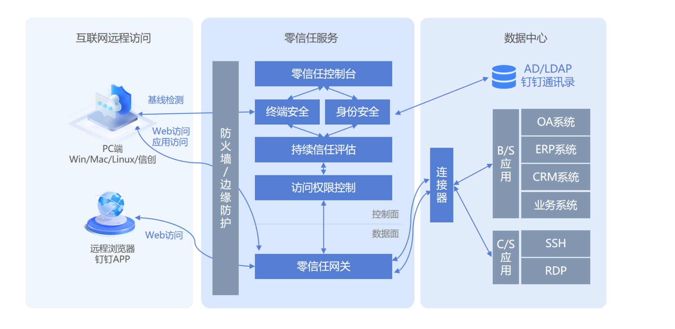 为了更好的进行安全防护。熊猫体育零信任为企业客户提供可落地的建设性解决方案,达到整改安全漏洞隐患,完善安全防护措施,优化安全策略,有效提升整体网络安全防护水平的目的。将安全防护能力用到各业务场景,为企业的保驾护航。