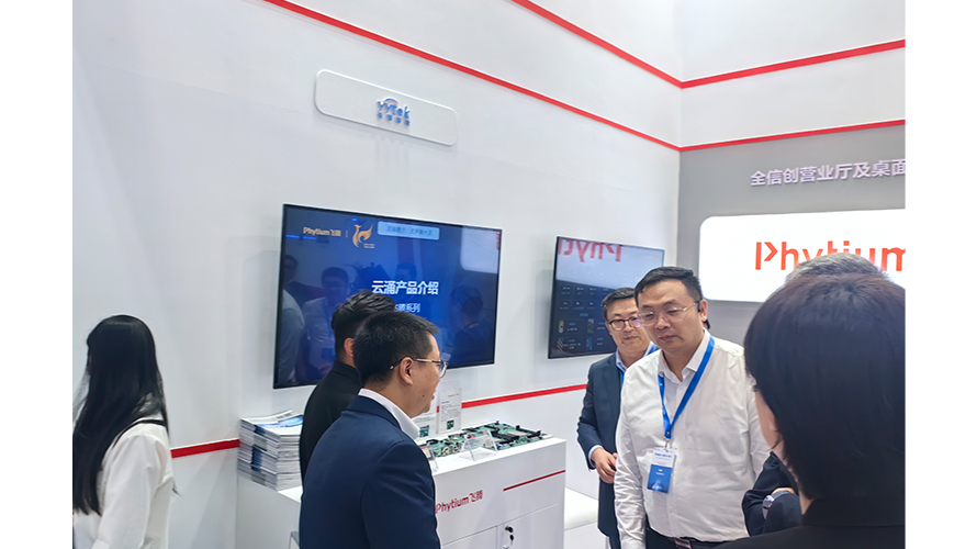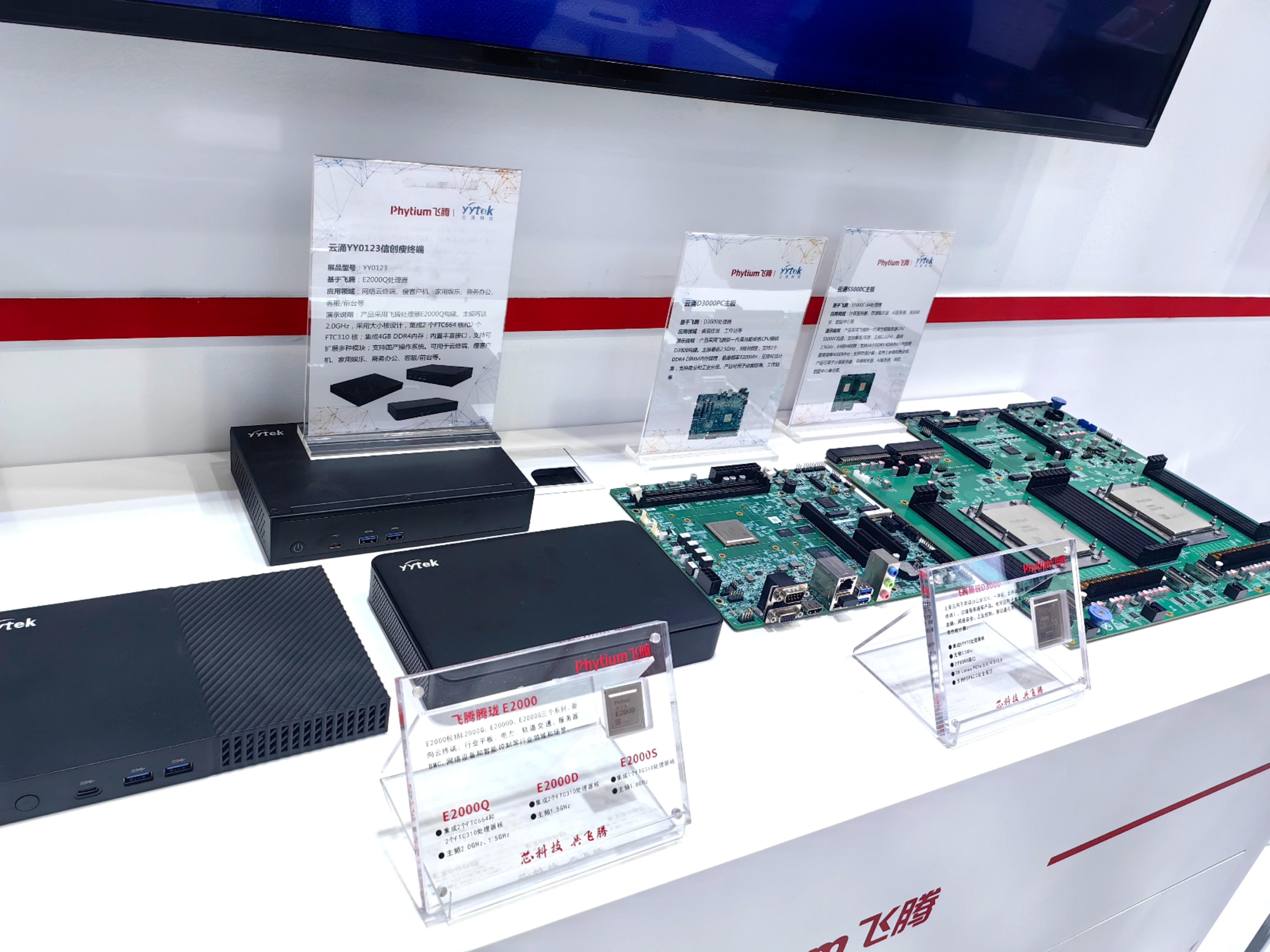 在飞腾解决方案及产品应用展示区,熊猫体育向大家展示了YY0125服务器主板、YY0149电脑主板,以及基于E2000Q的YY0123云终端,受到与会领导专家的广泛认可和好评。