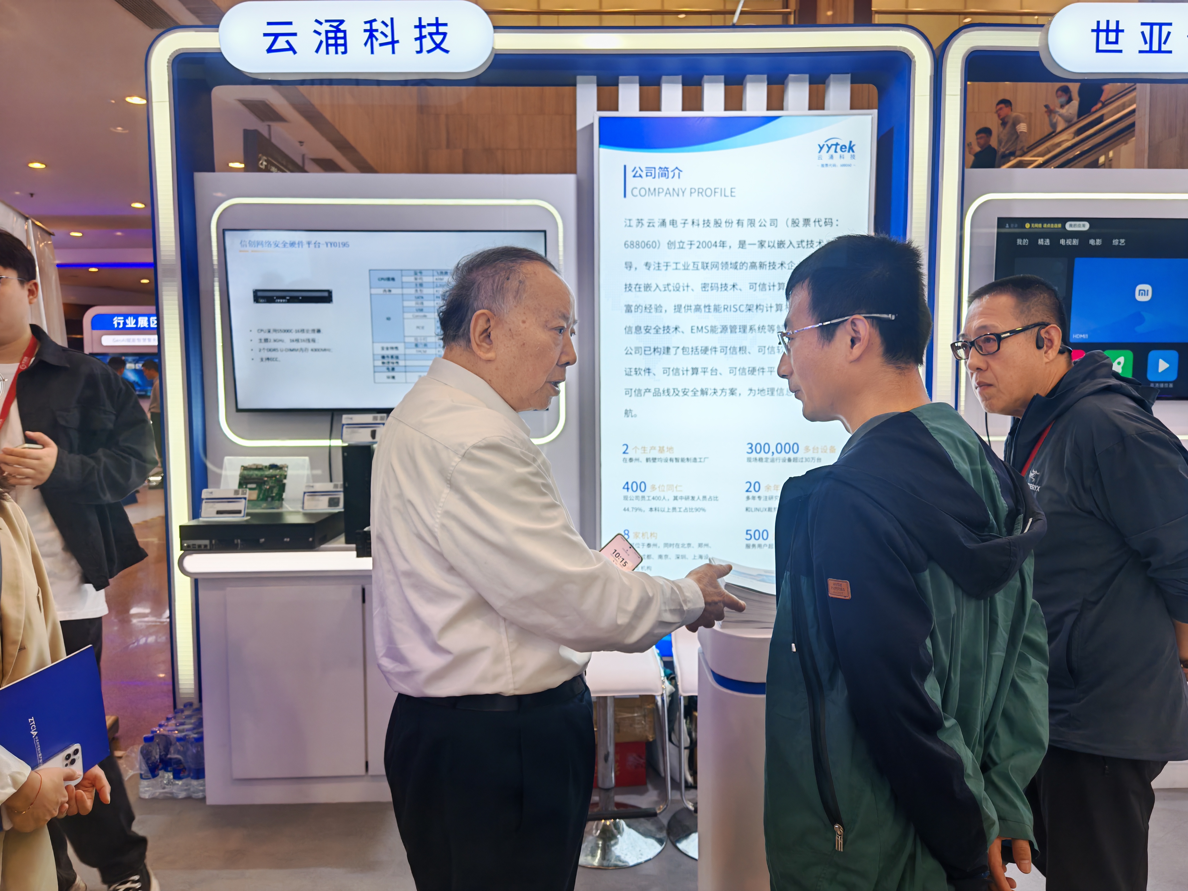 在展会现场,熊猫体育展台集中展示了覆盖 “硬件可信根 - 可信平台 - 行业应用” 的全链条硬件产品体系。核心展品包括具备密钥生成与身份认证功能的可信模块、支持多系统架构的PCIe 可信卡,以及基于飞腾、龙芯等国产芯片打造的系列终端与服务器产品 —— 从适配轻量化场景的飞腾 E2000Q 瘦终端,到满足高密度计算需求的飞腾 S5000C-64 可信服务器,再到面向网安领域的飞腾 S5000C-16 可信硬件平台,为地理信息技术创新提供安全可靠的硬件支撑。其中,基于飞腾 D3000 的 PC 主机及主板、龙芯 3A6000 系列主板等产品,通过可信技术,实现 “计算 + 保护” 双体系结构的主动免疫防护,可有效抵御未知恶意攻击,完美契合大会 “地理可信空间建设” 核心议题。