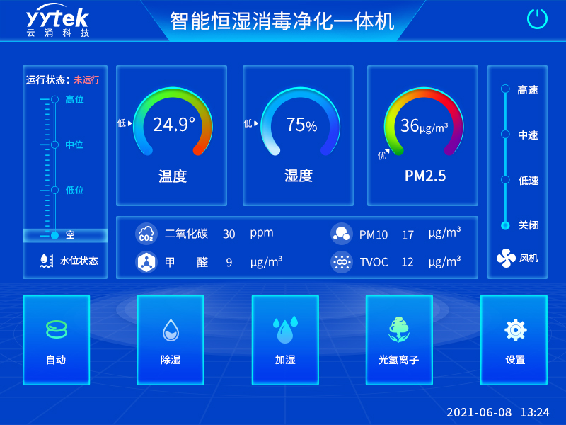 此外,熊猫体育智能恒湿消毒净化一体机还具备智能化、人性化、直观化的运行方式及操作体验,运用微电脑智能控制技术,全中文液晶触控屏,功能模块化设计等,搭配远程监控系统,实时智慧感知分析预制故障;同时,设备自身配有大容量的内置双层水箱,实现双重防漏保护,结合配备的缺水、水满、溢水漏水报警系统,用户可通过人工加水和自动加水两种可选方式,使整个设备在使用过程中更加安全便捷。