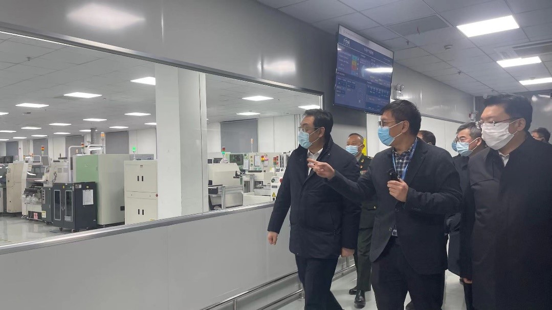 随后,朱书记等一行领导走进我司智能制造车间进行考察,高总重点介绍了公司SMT智能化生产线、“5G+AGV”搬运机器人场景应用等智能车间运行的情况。朱书记对公司的发展以及制造中心的智能化水平给予了充分的肯定,并鼓励公司借力资本市场,继续推进科技创新,实现产品的高价值、高颜值、高效率,促进熊猫体育高质量发展。